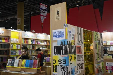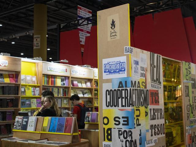 24. Inauguración del stand Tinta Limón en la Feria Internacional de Buenos Aires. Editoriales invitadas: Lom, Hijas del Kore, Nocturna, Bajo Tierra, El Zócalo, Traficantes de Sueños, Mandacaru, CFP24 y Ragif. Diseñado por Cooperativa de Diseño e intervenido por Gabinete de Ficciones Económicas - Gloria Gráfica. Muebles: Joaquín Nudel.